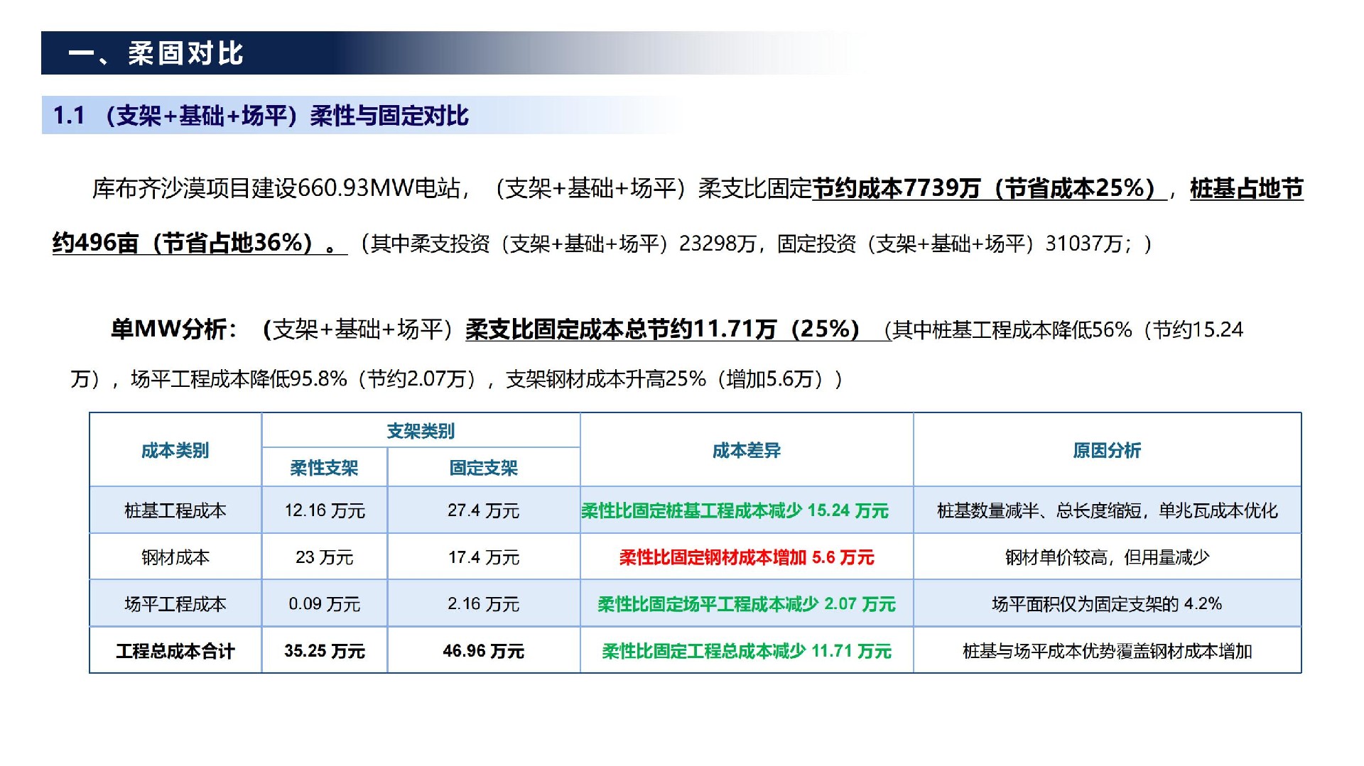 沙漠光伏场景(支架+基础+场平)柔性支架与固定支架对比分析报告