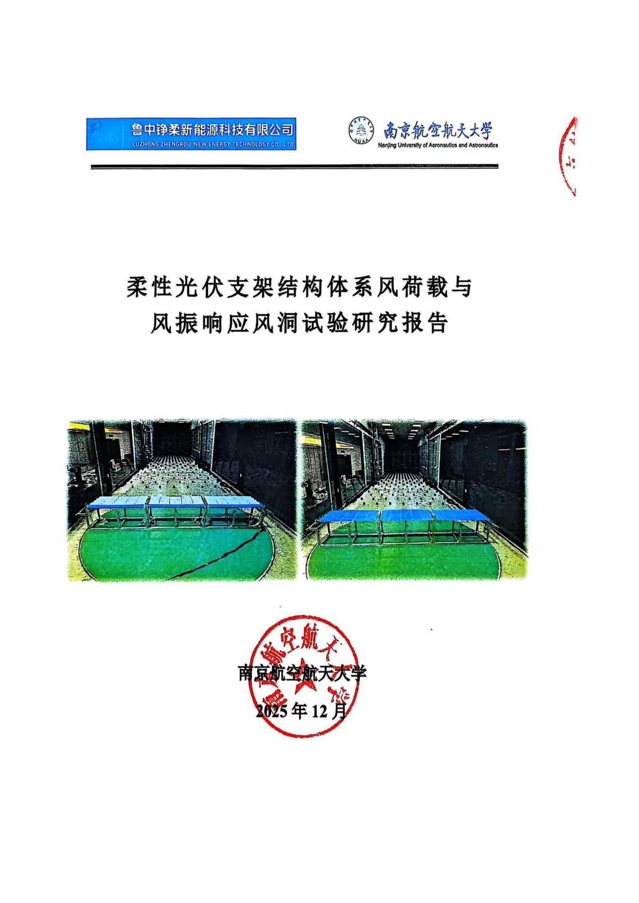 2025年12月5日,我公司旗下新能源技术研发公司—鲁中铮柔新能源科技有限公司圆满完成柔性光伏支架风洞试验。此试验委托南京航空航天大学开展柔性光伏支架的风荷载与风振动响应风洞测试工作,通过系统风洞试验及有限元分析,聚焦大跨距索网柔性光伏支架,为柔性光伏支架的安全设计与工程应用提供了关键技术支撑。